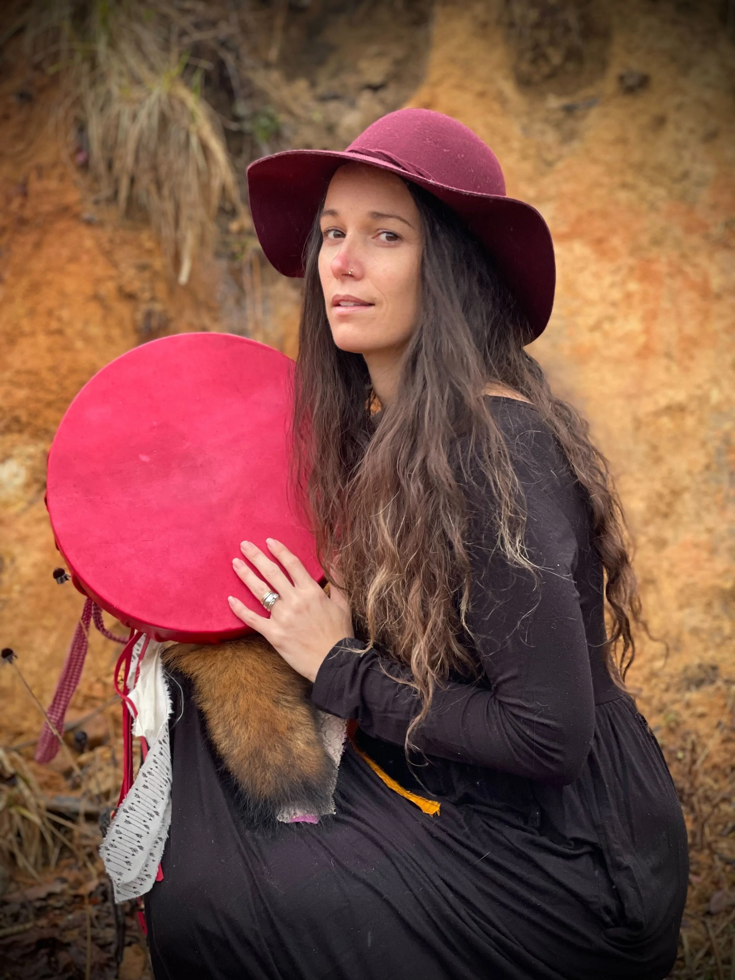 Founder and Creatrix of The Art of Wild Pleasure and co-creatrix of the Temple of the Rebel Goddess, Sarah Monroe is a (re)Wilding Guide, Drum Witch, Spoken Word Artist, and Priestess of the Sacred Grove.